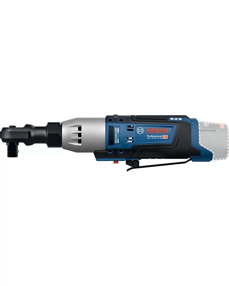 Ráčnový klíč GRC 12V-60 1/2 SN je určen na povolování a utahování upevňovacích prvků ve stísněných prostorách. Je kompatibilní se všemi 12V akumulátory Bosch Professional.
