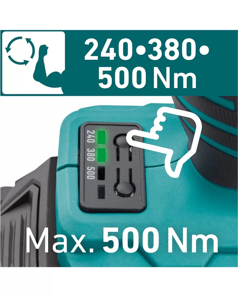 • Výkonný rázový brushless aku utahovák s vysokým max. kroutícím momentem 500 Nm poskytuje výkon pro širokou škálu utahovacích a povolovacích operací.