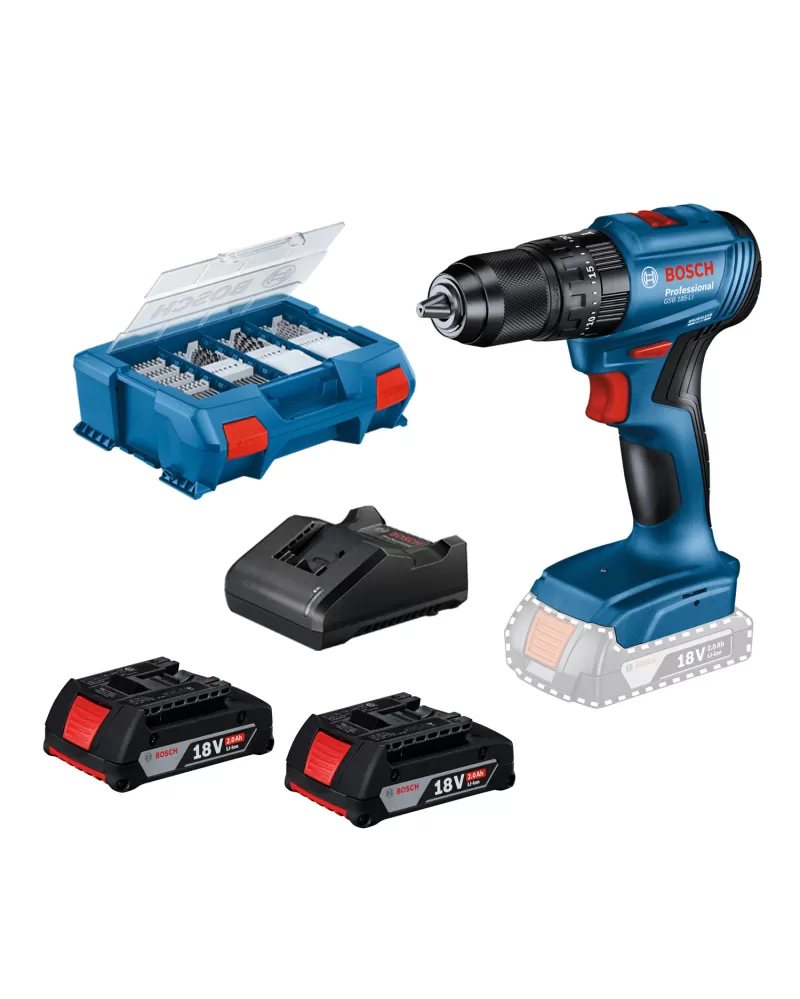 Aku příklepový šroubovák 18V 2x2,0Ah Bosch GSB 185-LI + sada 0615990N2P