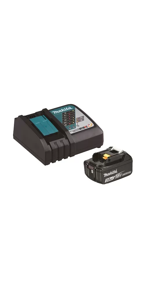 Součástí sady je rychlonabíječka DC18RC a akumulátor BL1830B. Baleno v kartonu.