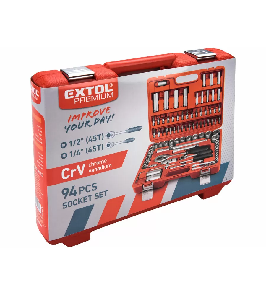 Hlavice nástrčné sada 94ks 1/4" 1/2" CrV S2 EXTOL PREMIUM 6525