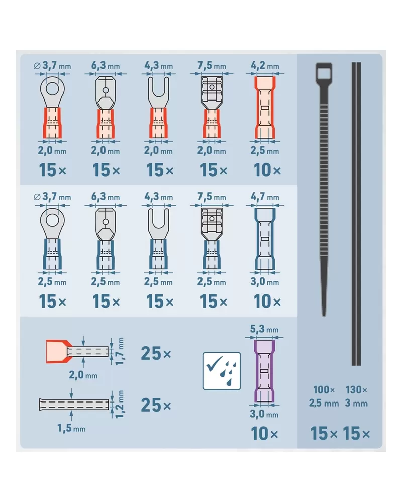 Kleště odizolovací/krimpovací a koncovky, sada 231ks EXTOL PREMIUM 8831126 Technické parametry: 210mm/0,2-6mm2. Doplňující parametr: délka… Celý popis