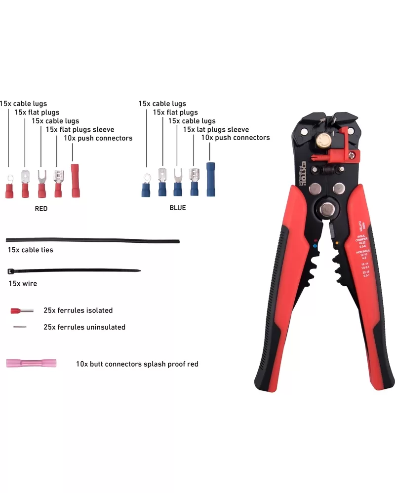 Kleště odizolovací/krimpovací a koncovky, sada 231ks EXTOL PREMIUM 8831126