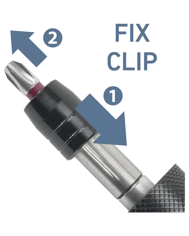 • Mechanismus funkce Fix-Clip pracuje tak, že hrot je po lehkém zatlačení do držáku pevně zafixován a pro jeho vyjmutí je třeba vnější prstenec nejprve zatlačit směrem k rukojeti a poté hrot vyjmout.