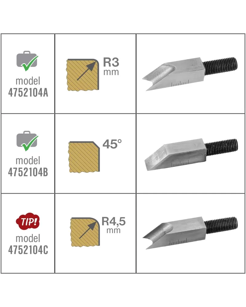 • Technické parametry: má 2 nožové profily (45° - R3mm/1/8").