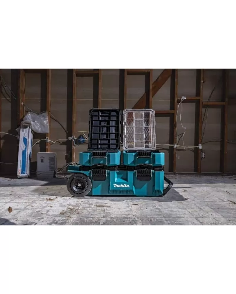 Maktrak vozík s boxem na nářadí Makita P-91001 Maktrak vozík s boxem je konstruován z kopolymeru odolného proti nárazu, aby odolal nejnáročnějším podmínkám na stavbě. Nosnost 113 kg, objem 58,5 l. Obsahuje vyhrazený prostor pro nabíječku a...