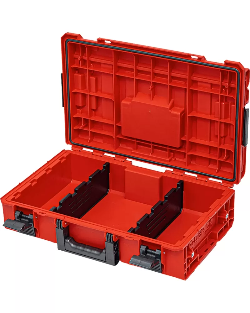 Je vyroben z ultra odolného plastu, který je výjimečně odolný vůči mechanickému poškození. Díky vnitřnímu uspořádání se šesti vyjímatelnými kbelíky a nastavitelnými přepážkami umožňuje dokonalou kontrolu nad uloženým vybavením. Pružné těsnění s krytím IP66 zajišťuje ochranu proti vodě a prachu. Box má nosnost až 50 kg a je ideální pro přepravu i uložení nářadí, ať už v dílně nebo přímo na stavbě.