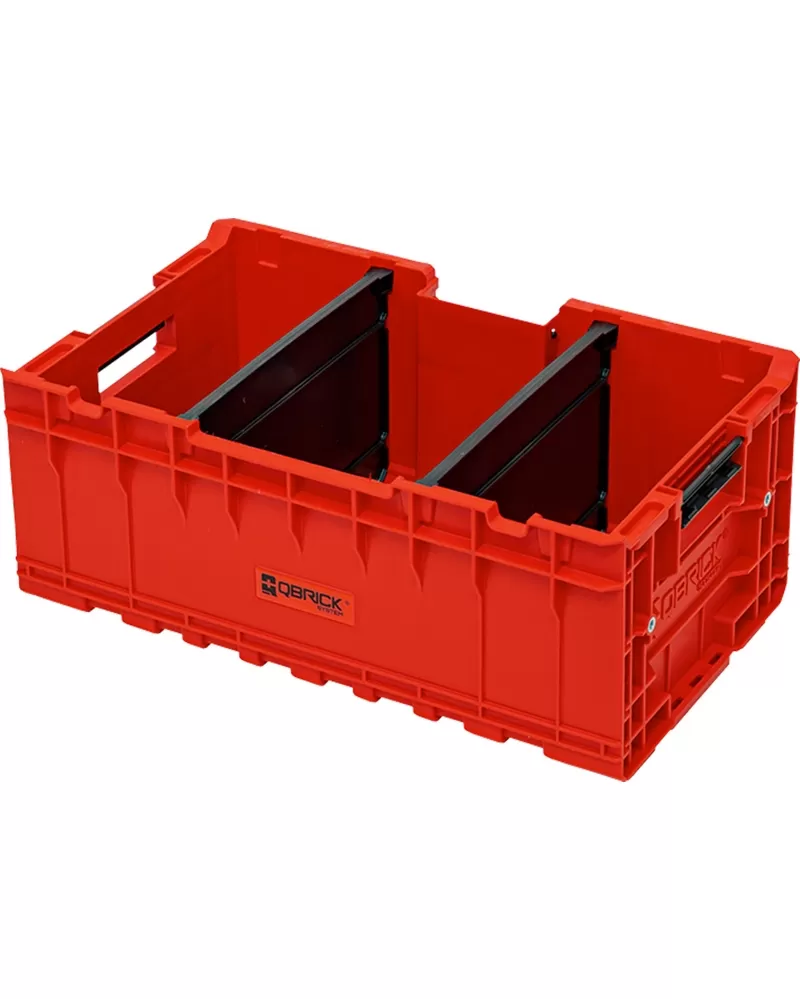Přepravní box je otevřený box na nářadí vyrobený z mimořádně odolného materiálu RED ULTRA HD. Díky otevřené konstrukci umožňuje rychlý přístup k nářadí i materiálům bez nutnosti odklápění víka. Je kompatibilní s ostatními boxy systému Qbrick ONE a vybaven závitovými vložkami M8 pro individuální úpravy.