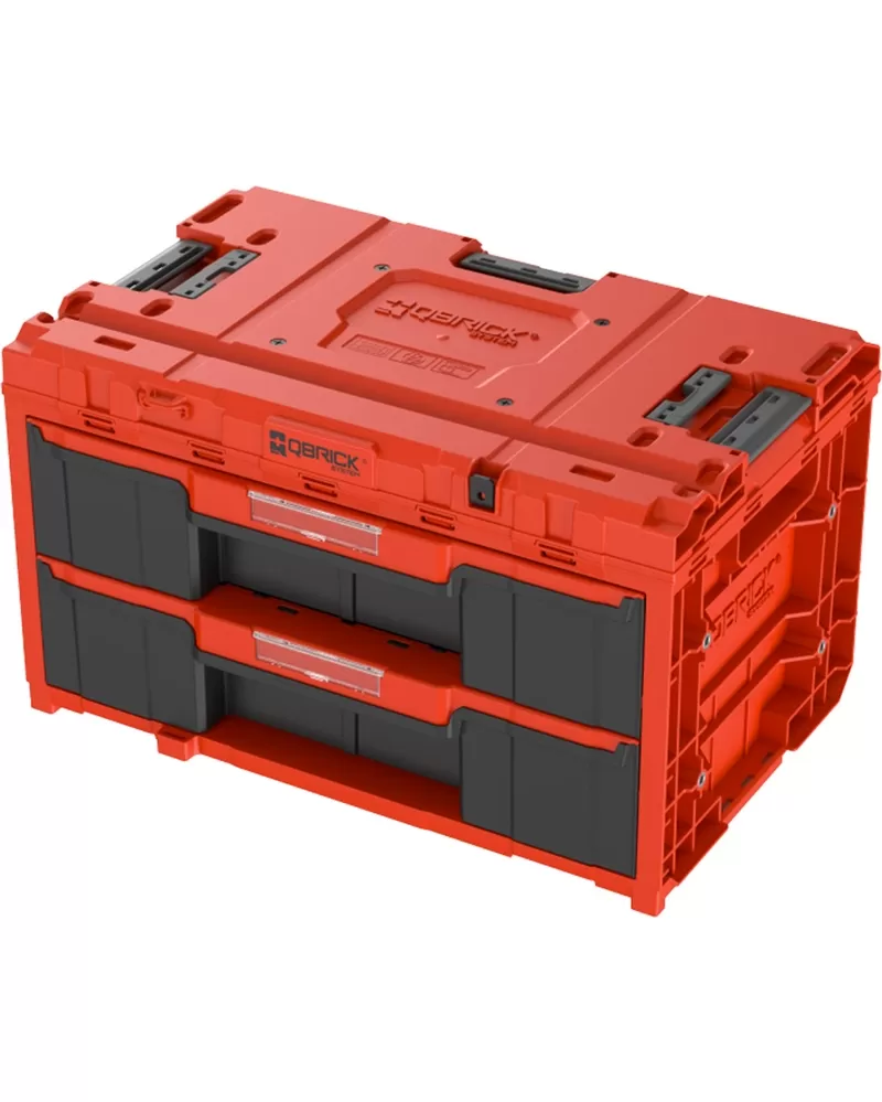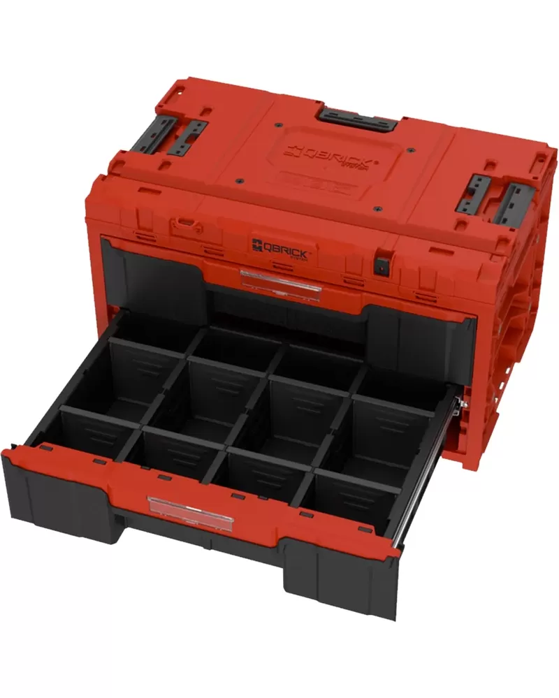 Box plastový s organizérem plastový QBRICK ONE 2.0 DRAWER 2 TOOLBOX RED Ultra HD Custom, 2 zásuvky 587x380x340 mm P90721