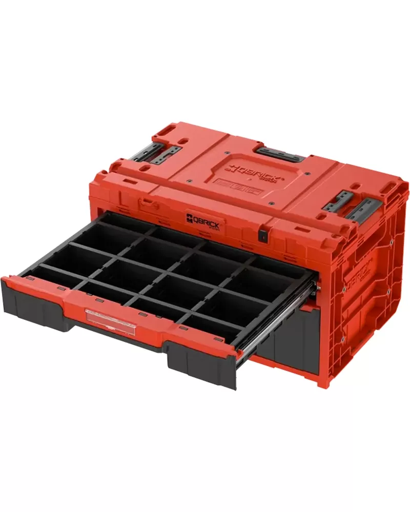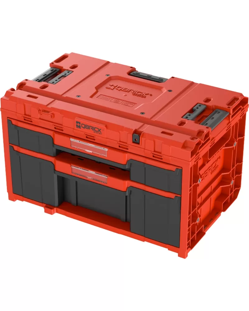 Plastový box s dvěma zásuvkami na kovových pojezdech, vybavený nastavitelnými přepážkami pro efektivní organizaci nářadí. Vyroben z odolného plastu RED ULTRA HD, odolává mechanickému poškození i nízkým teplotám. Modulární design umožňuje propojení s dalšími boxy systému Qbrick ONE, což zajišťuje flexibilitu a přizpůsobení podle potřeb uživatele. S objemem 50 litrů nabízí dostatek prostoru pro uložení nářadí a příslušenství.