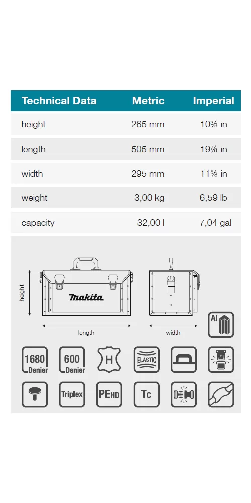 Vyztužená brašna na nářadí. S ramenním popruhem, vyrobeno z vysoce odolného a pevného materiálu. Lze ji uzavřít pomocí 2 zámků na přední straně. Celý popis