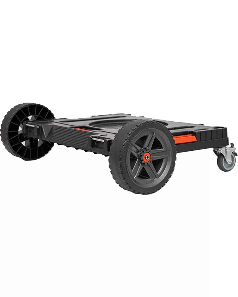 • Podvozek si snadno poradí s nerovným terénem díky dvěma velkým 9” pogumovaným kolům a dvěma otočným kolečkům s brzdou.