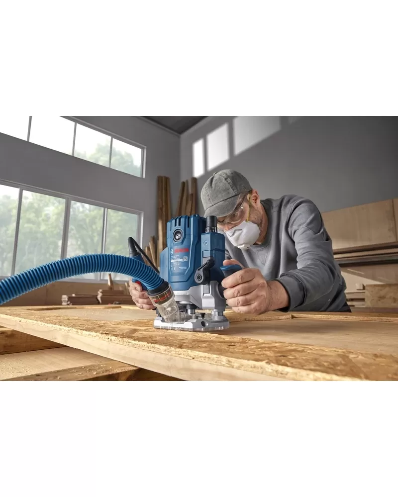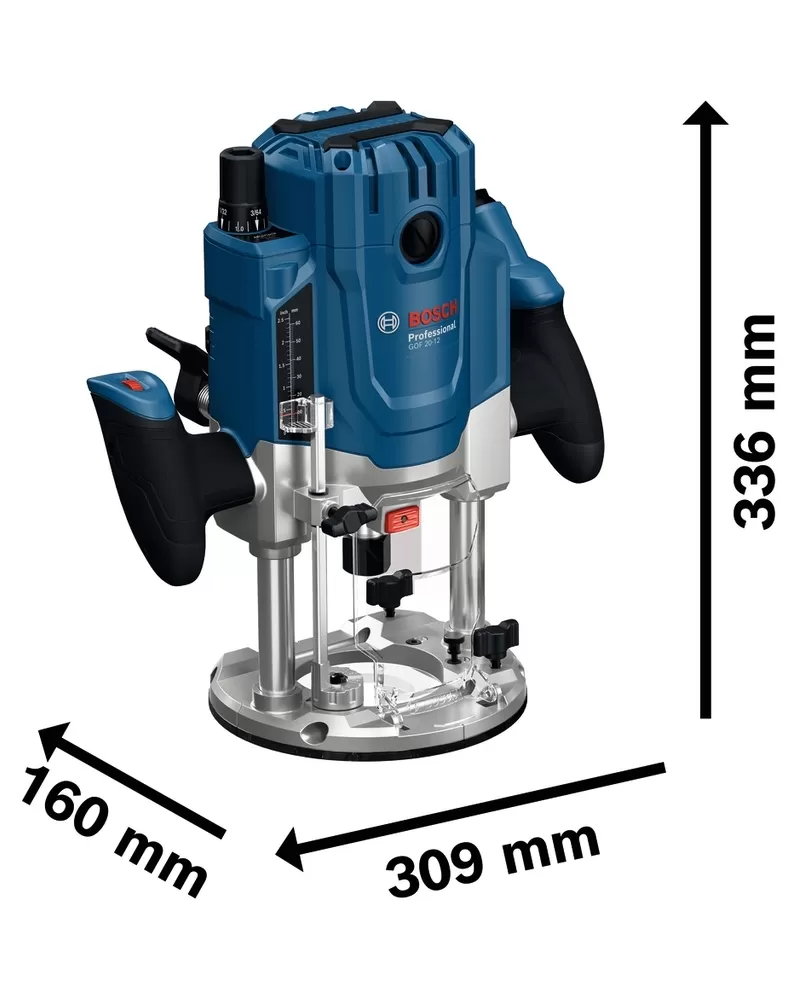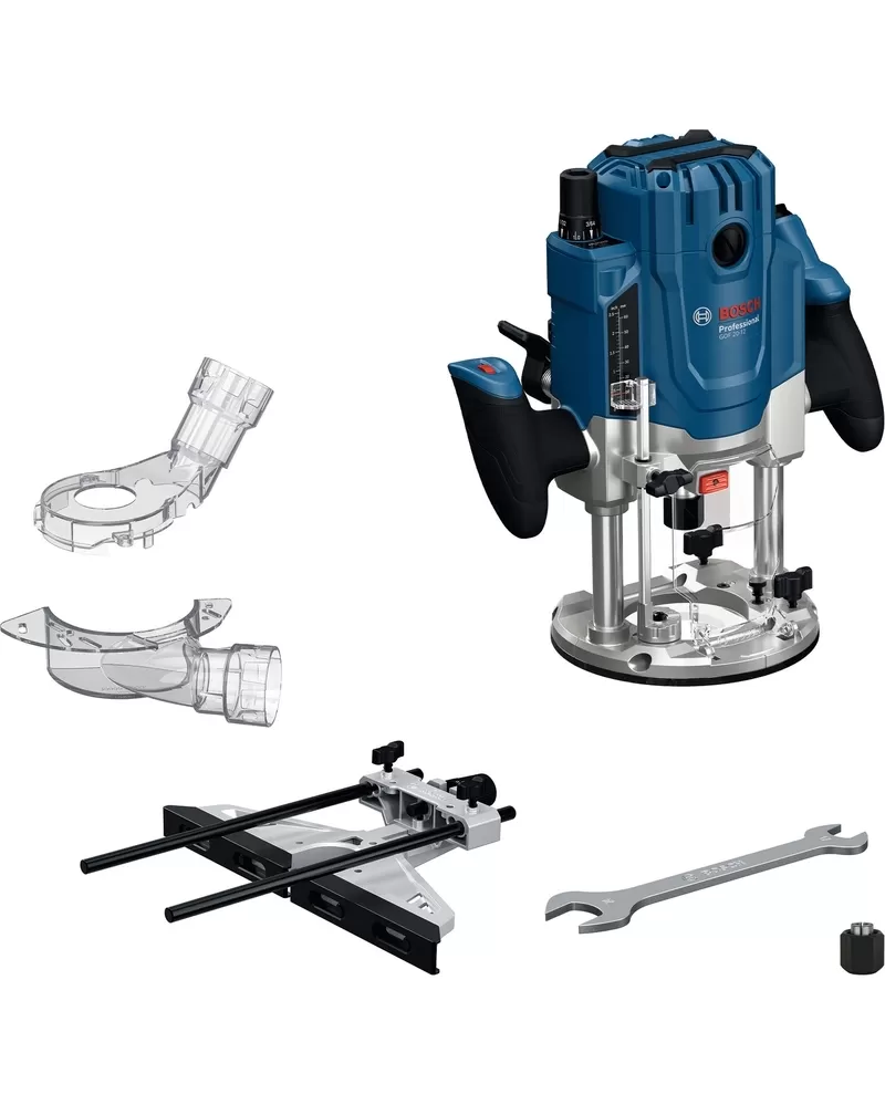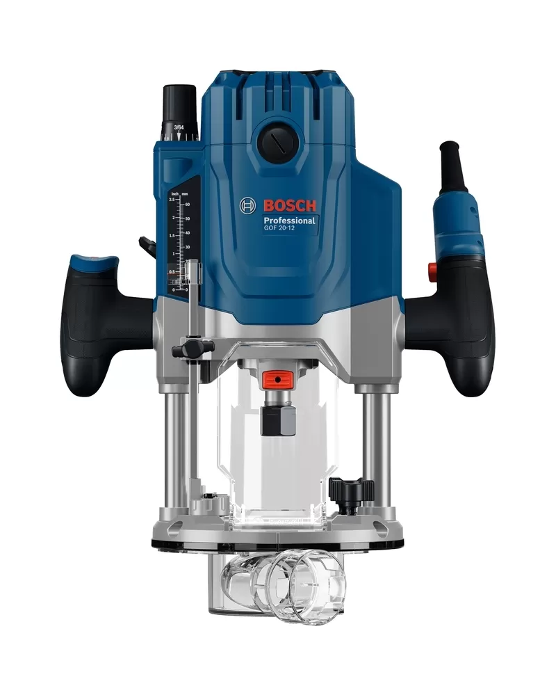 GOF 20-12 je vybaven voličem rychlosti na levé straně a aretačním vypínačem na pravé rukojeti, snadno dosažitelnou ponornou páčkou a specifickými adaptéry pro odsávání prachu pro frézování povrchů i hran