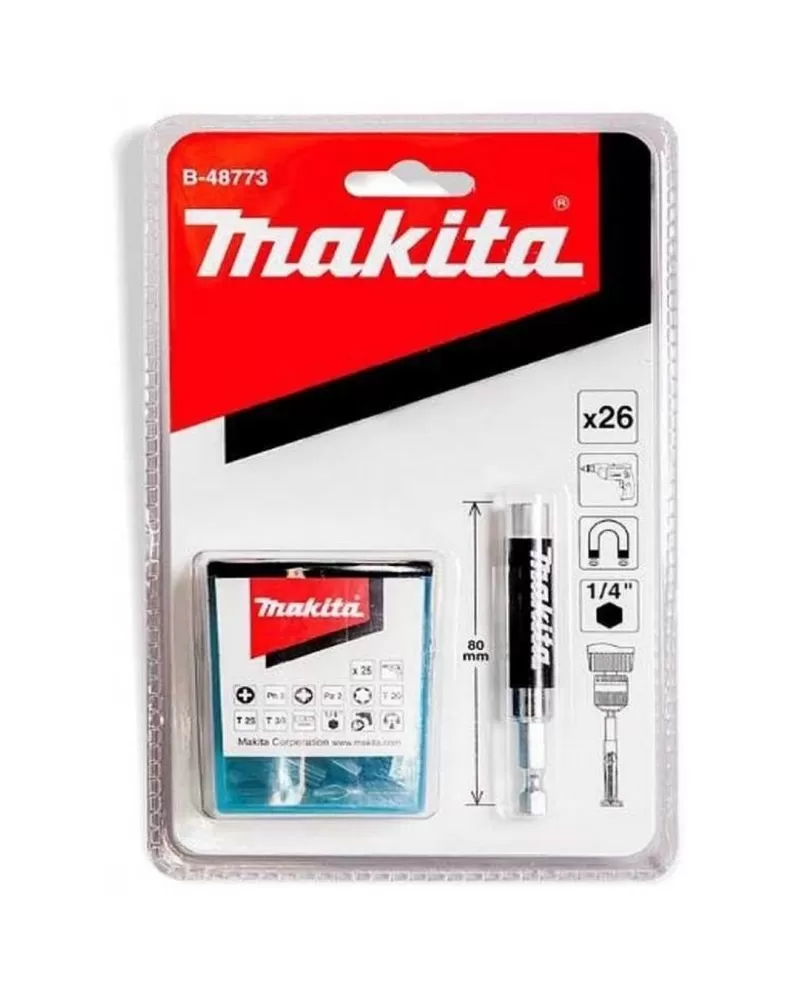 Sada bitů 26 ks s adaptérem 80 mm. Skládá se ze 26 čtyřhranných bitů různých velikostí pro pohodlné šroubování. Součástí je adaptér 80 mm. Sada je dodávána v originálním robustním plastovém pouzdře pro snadnou údržbu a přepravu.