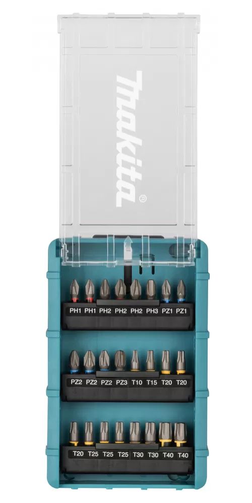 Sada obsahuje torzní bity PH1 (2ks), PH2 (3ks), PH3 (1ks), PZ1 (2ks), PZ2 (3ks), PZ3 (1ks),T10 (1ks), T15 (1ks), T20 (3ks), T25 (3ks), T30 (2ks), H4… Celý popis