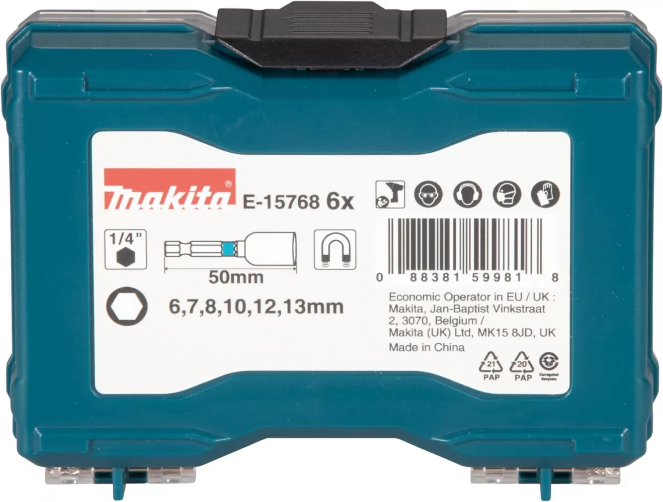 Sada obsahuje nástrčné bity, průměr 6 - 13 mm, plastová kazeta, 6 ks. Obsahuje nástavce 6, 7, 8, 10, 12 a 13 mm