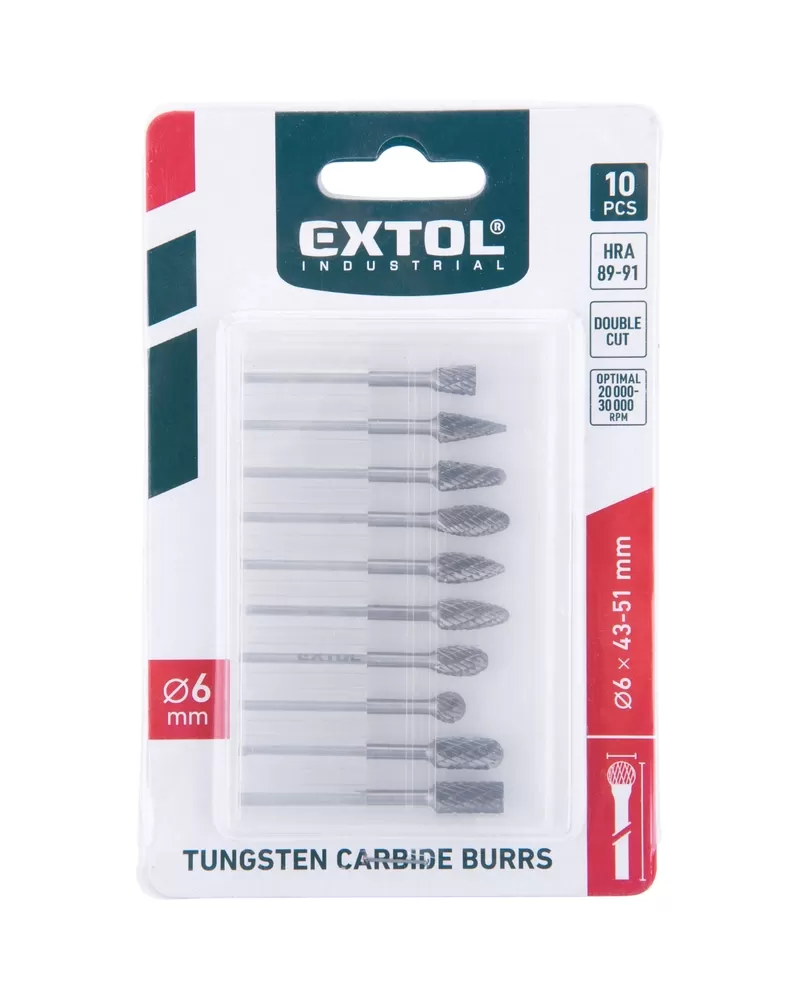 Frézy karbidové sada 10ks EXTOL INDUSTRIAL 8703810