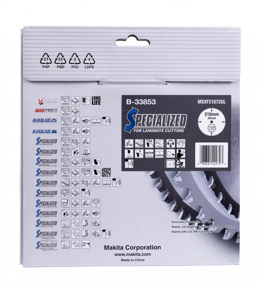 Standardní řada pilových kotoučů pro řezání lamina pokosovými pilami. Konstrukce kotoučů je upravená pro rychlý a velmi čistý řez.