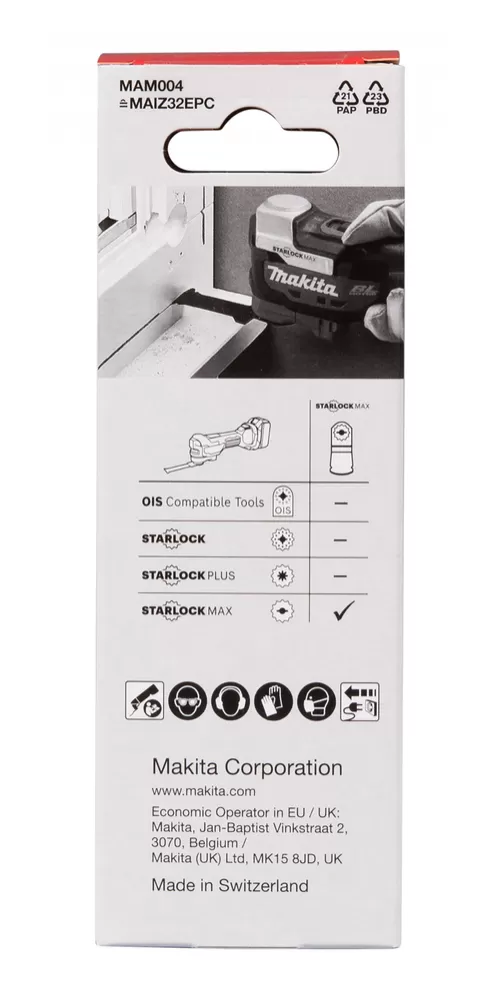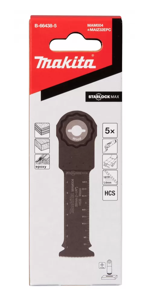 Ponorný pilový list MAM004 má 32 mm široký a 80 mm hluboký řezný list a má obzvláště dlouhou životnost. Vhodné pro přesné ponorné řezy do dřeva. S držákem Starlock Max pro maximální přenos síly a rychlou výměnu kotouče. Balení 5 ks.