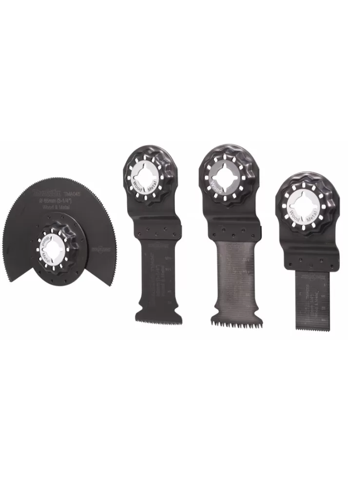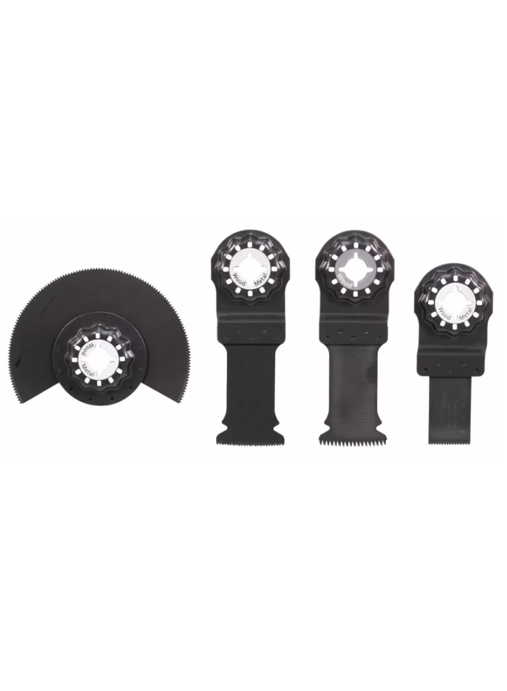 Sada obsahuje pilový kotouč 85 mm BiM B-64799, pilový list rovný 32 x 36 mm BiM B-64814, pilový list rovný 32 x 50 mm BiM B-64870 a pilový list rovný 20 x 30 mm BiM B-64923.