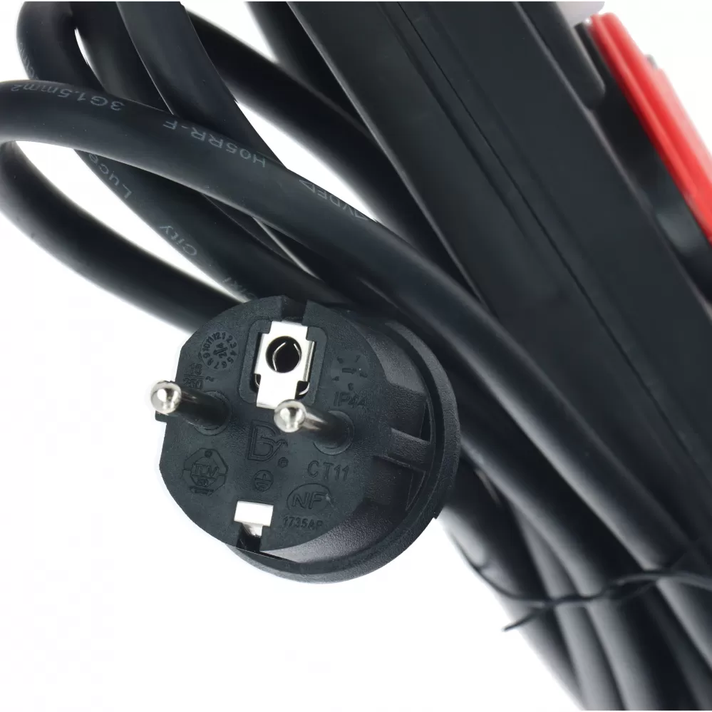 Díky svému krytu odolnému vůči mechanickému poškození a třídě krytí IP44 zajišťuje bezpečnost i v obtížných pracovních podmínkách. Ideální pro profesionální použití v dílnách, garážích, stavbách a zahradách nebo při renovaci a montáži.