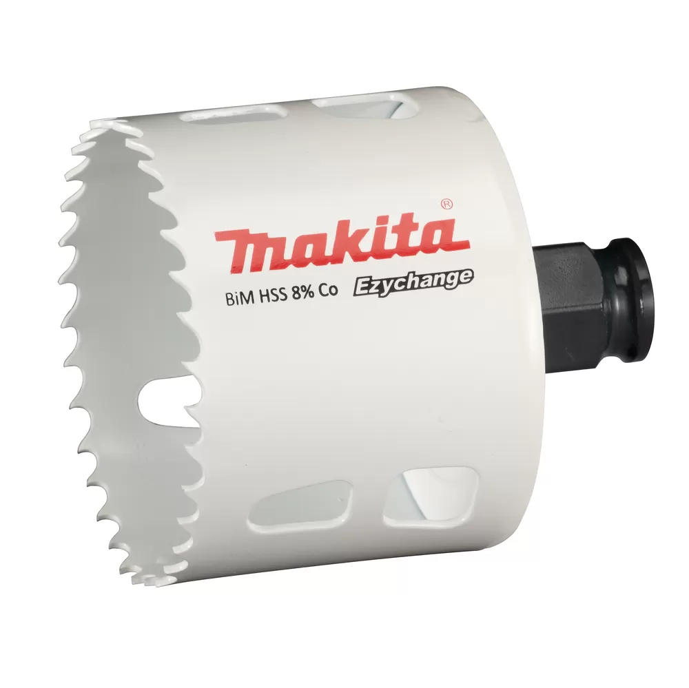 Univerzální rychloupínací adaptér pro všechny průměry ve výši 16-152 mm. Umožňuje velmi rychlou vrtáků a korunek bez použití nářadí. Korunky jsou vhodné pro vyřezávání otvorů ve dřevě, plastech, hliníku, neželezných kovech, oceli nebo nerezovém plechu. Pracovní výška korunky je 44mm. Výška povrchové úpravu zubů HSS-Co 8% je 4 mm. Balení po 1 ks. POZOR NELZE KOMBINOVAT S PŮVODNÍM SYSTÉMEM EZYCHANGE!