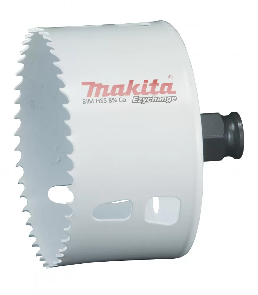 Univerzální rychloupínací adaptér pro všechny průměry ve výši 16-152 mm. Umožňuje velmi rychlou vrtáků a korunek bez použití nářadí. Korunky jsou vhodné pro vyřezávání otvorů ve dřevě, plastech, hliníku, neželezných kovech, oceli nebo nerezovém plechu. Pracovní výška korunky je 44mm. Výška povrchové úpravu zubů HSS-Co 8% je 4 mm. Balení po 1 ks. POZOR NELZE KOMBINOVAT S PŮVODNÍM SYSTÉMEM EZYCHANGE!