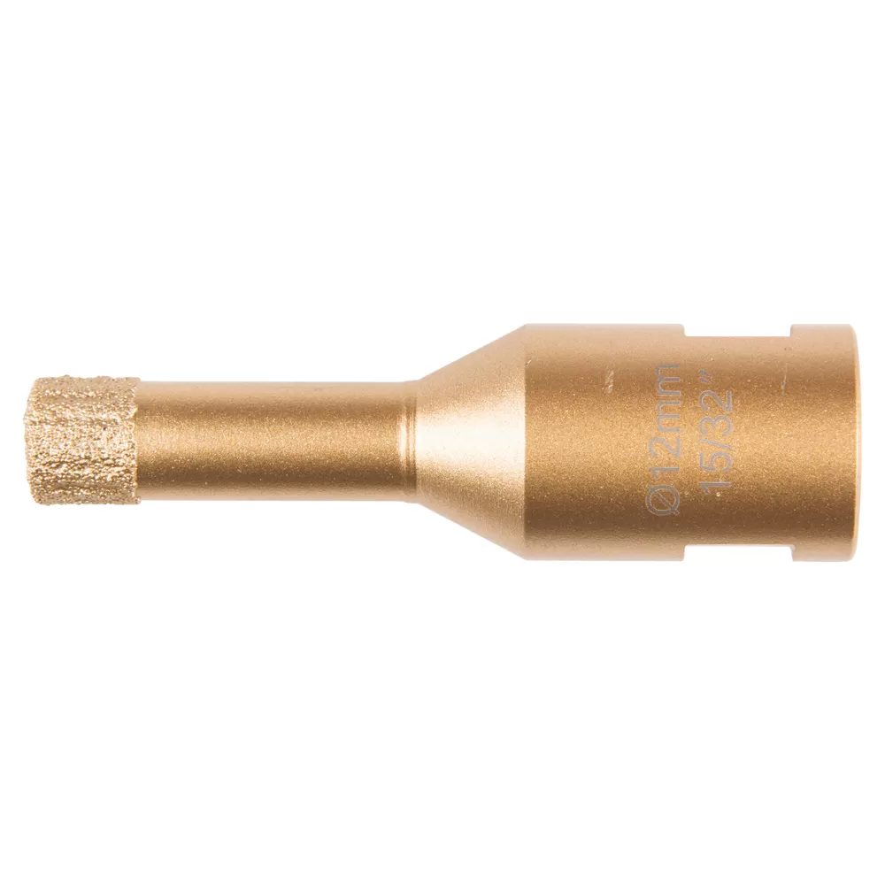 Diamantový dutý vrták s dlouhou životností a průměrem 12 mm pro všechny úhlové brusky od 115-230 mm se závitem M14 pro suché vrtání. Výška diamantového segmentu je 10 mm. Vhodné pro rychlé vrtací práce do max. 12 000 min-1.