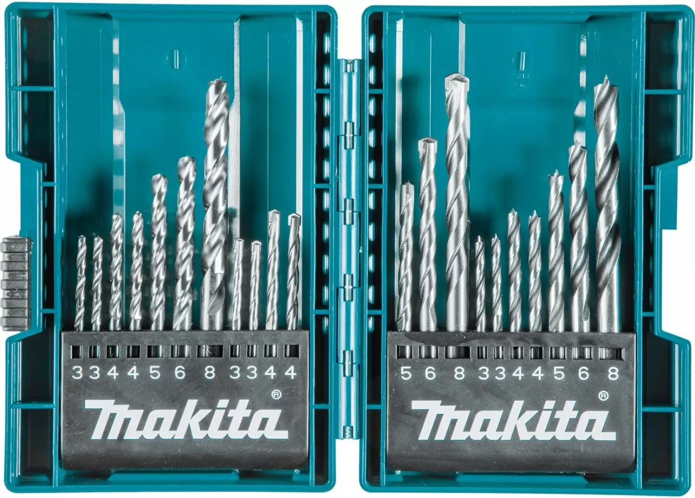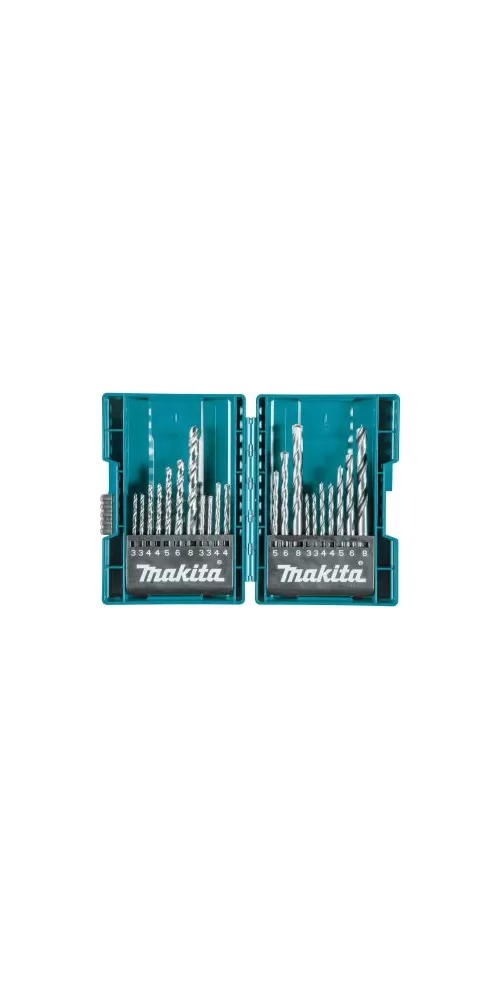 Sada obsahuje vrtáky HSS v rozměru 3, 3, 4, 4, 5, 6 a 8 mm, vrtáky do zdiva 3, 3, 4, 4, 5, 6 a 8 mm a vrtáky do dřeva 3, 3, 4, 4, 5, 6 a 8 mm. Baleno v plastové krabičce.