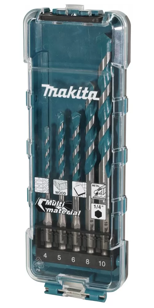 Sada 5 kusů univerzálních vrtáků umožňujících vrtat různé typy materiálů - dřevo, plast, ocel, hliník, zdivo nebo obkladačky. Upínání vrtáků je šestihran 1/4". Součástí sady jsou vrtáky 4 x 90, 5 x 100, 6 x 100, 8 x 120 a 10 x 150 mm. Sada je balená v plastové krabičce