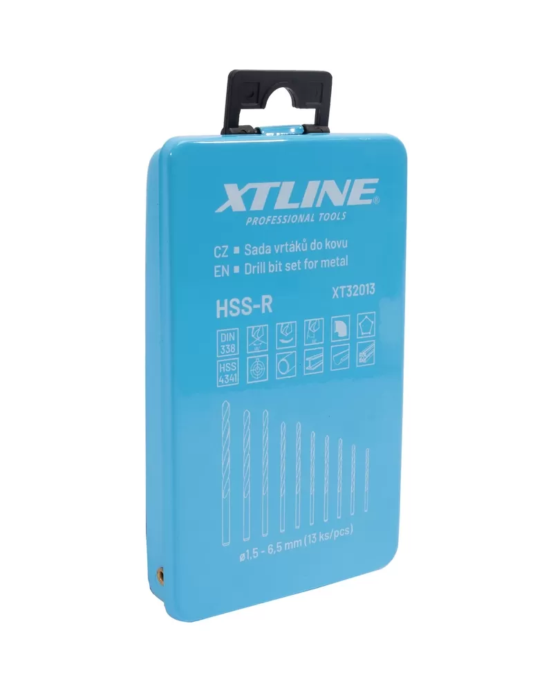 Sada vrtáků do kovu HSS-R 1,5-6,5 mm 13 dílů, kovový obal XTline XT32013