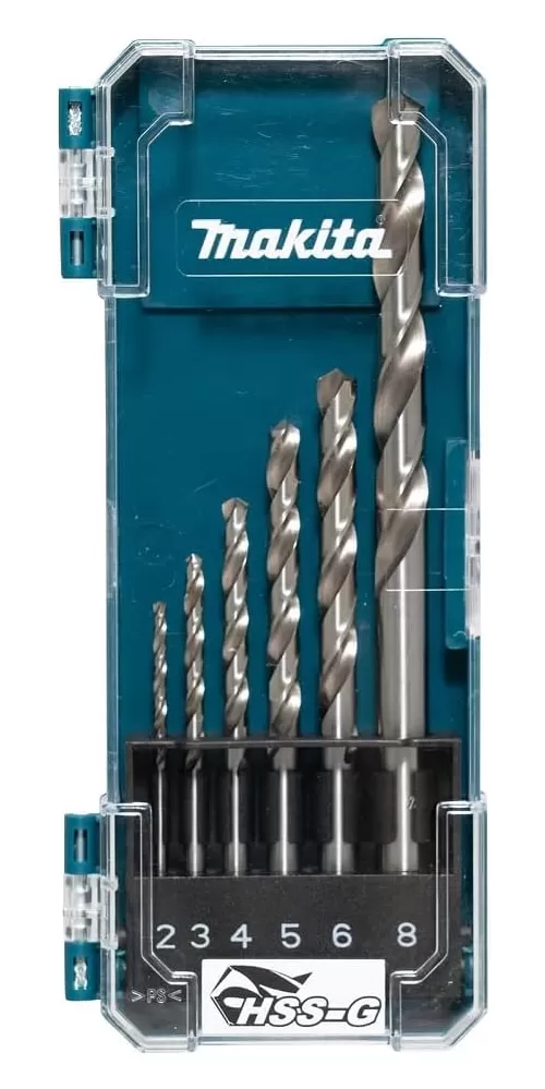 Sada obsahuje vrtáky HSS-G Obsahem balení jsou průměry 2, 3, 4, 5, 6, 8 mm. Dodáváno v plastové krabičce.