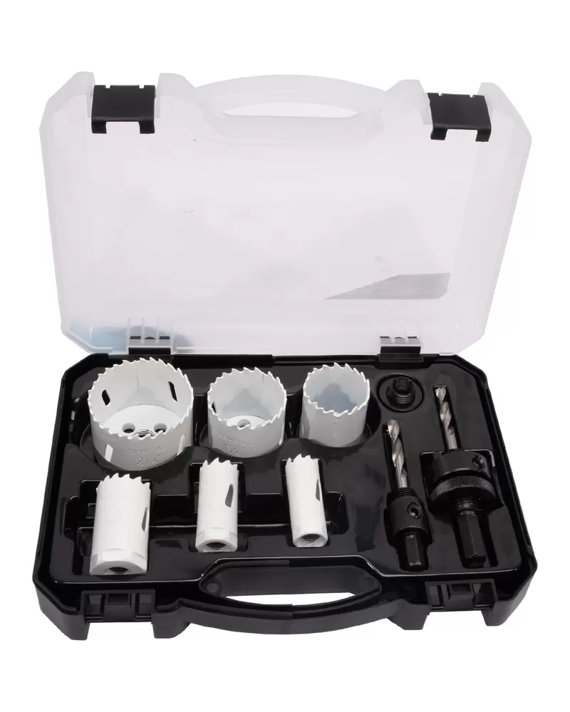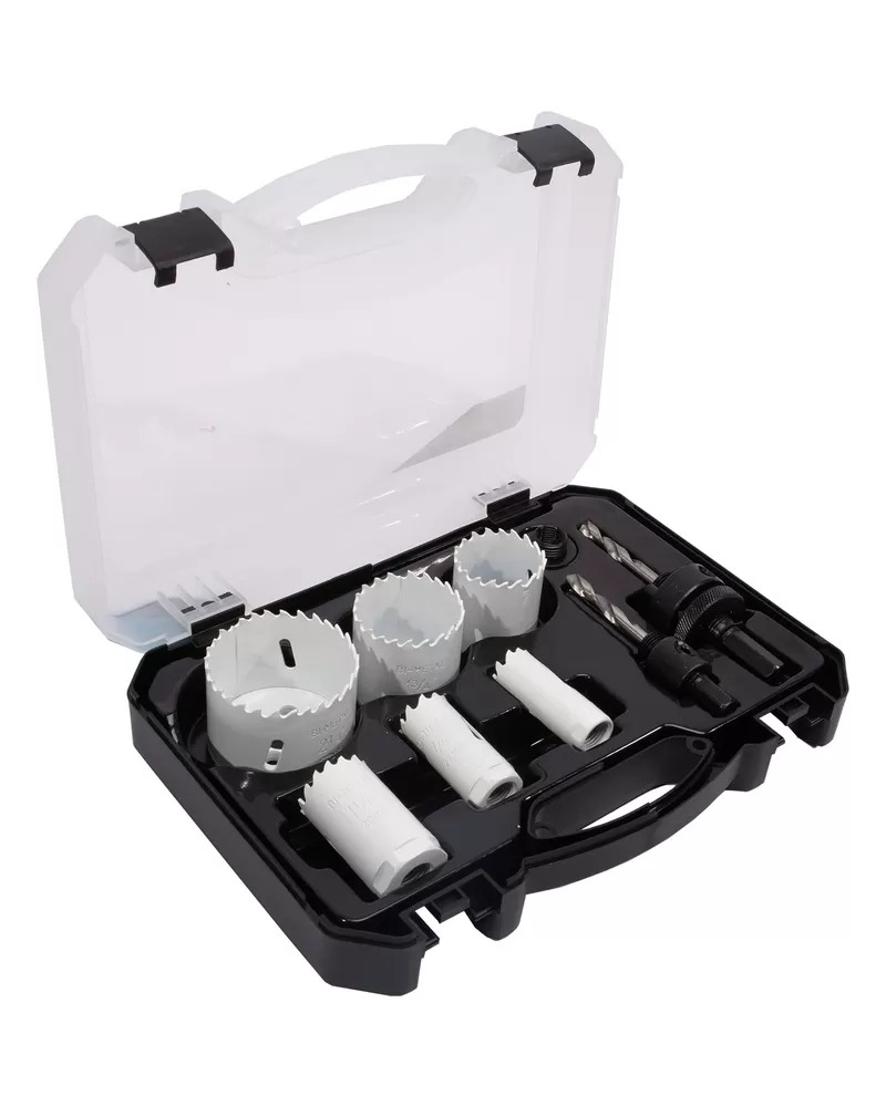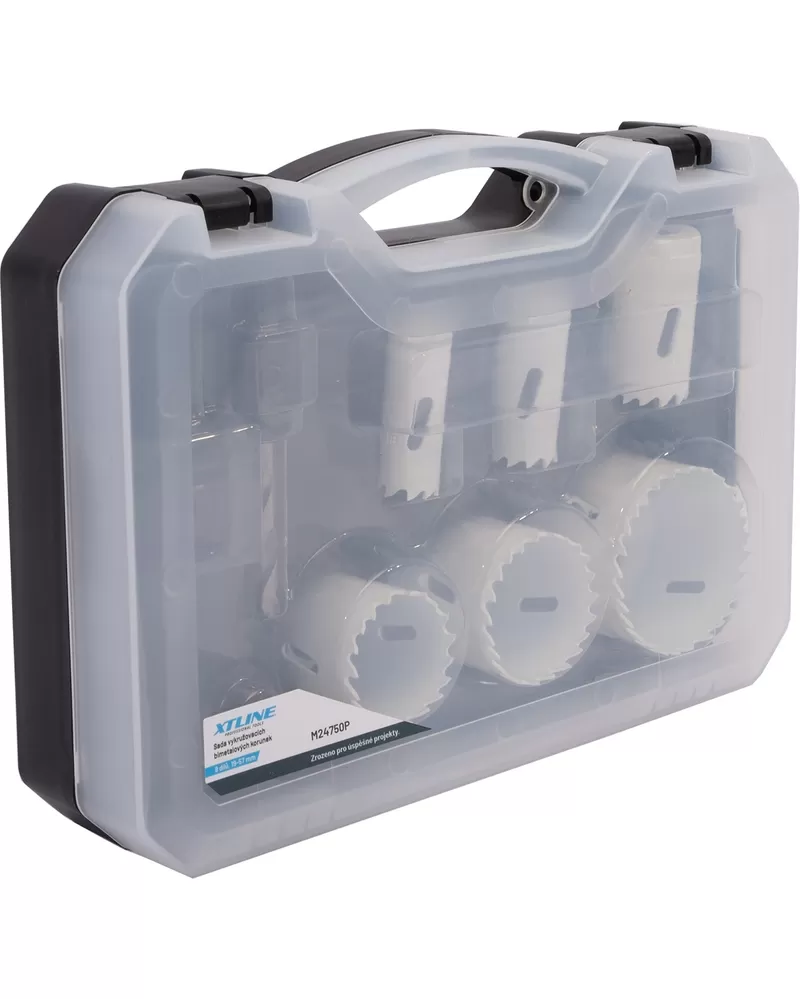 Sada vykružovacích bimetalových korunek 9 dílů 19-57 mm, plastový box XTline M24750P