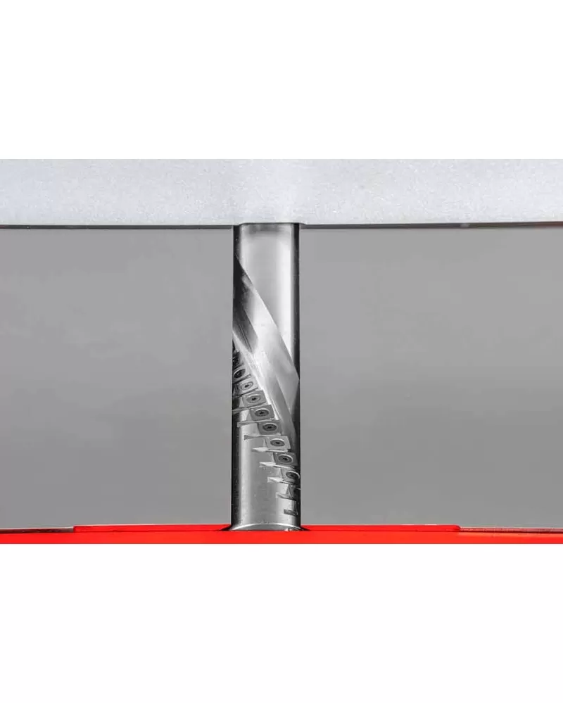 • Spirálový hoblovací válec se 44 namontovanými otočnými noži (15x15x2,5 mm–30°) pro obzvlášť čistý řez a sníženou hlučnost
