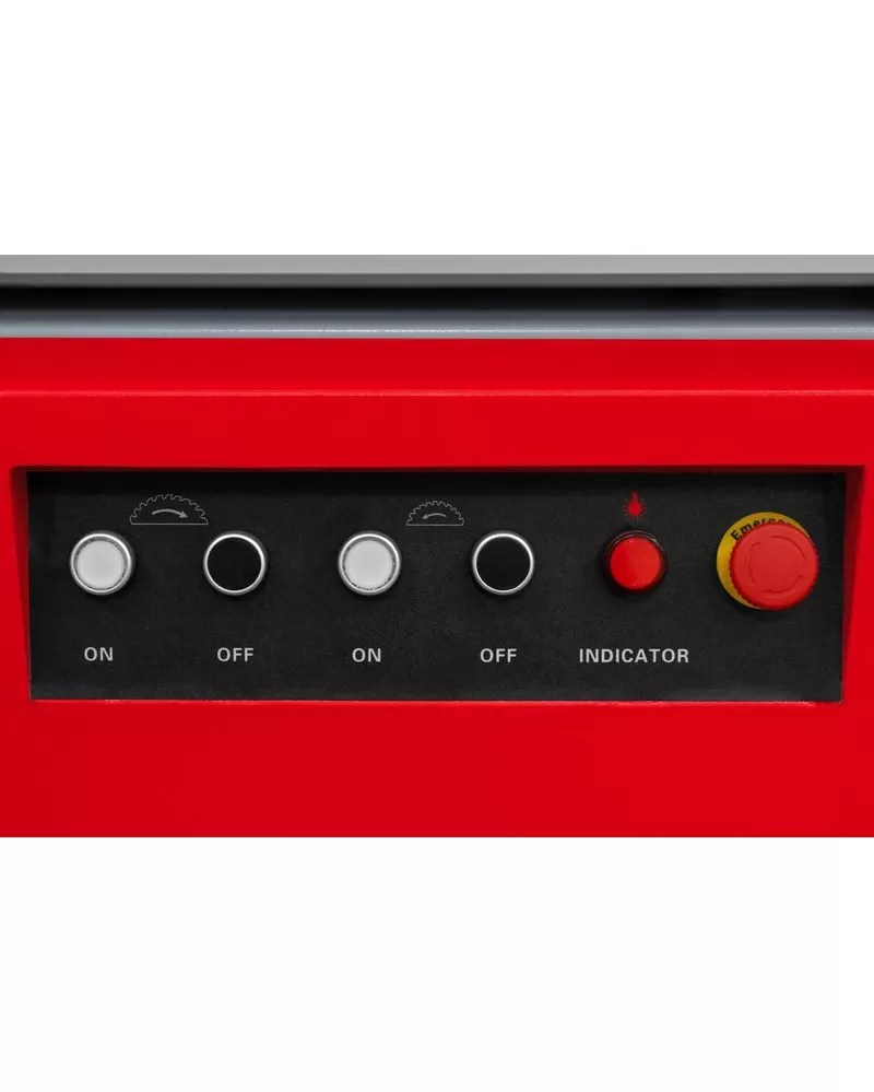 • Pracovní stůl z litiny (910 × 650 mm) včetně rozšíření stolu (900 × 690 mm) a prodloužení stolu (630 × 690 mm) v ocelové konstrukci