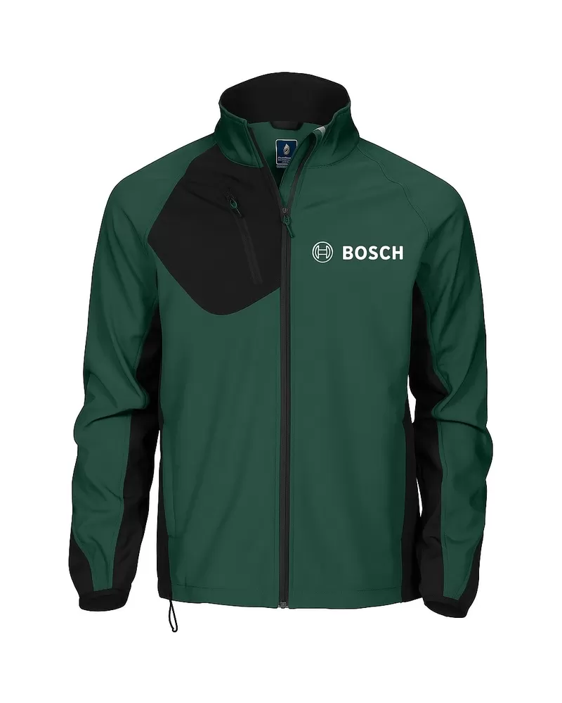 Softsheelová bunda velikost XL forest green Bosch Praktická softshellová bunda Měkký materiál pro větší pohodlí Vnitřní kapsy Jedna náprsní kapsa na zip Boční kapsy na zip Vysoký límec Zip po celé délce Chránič brady v horní části zipu