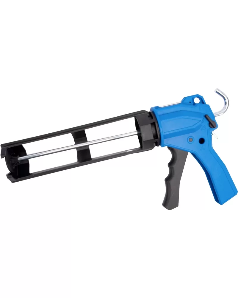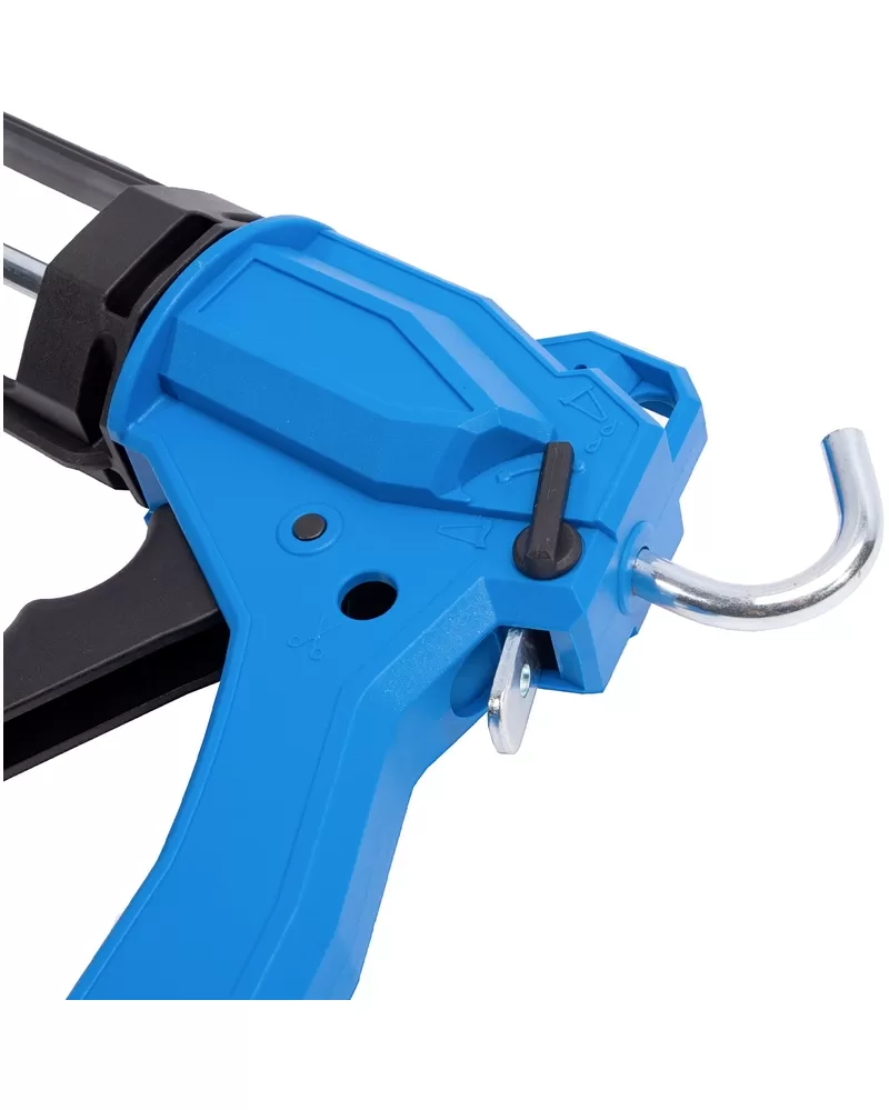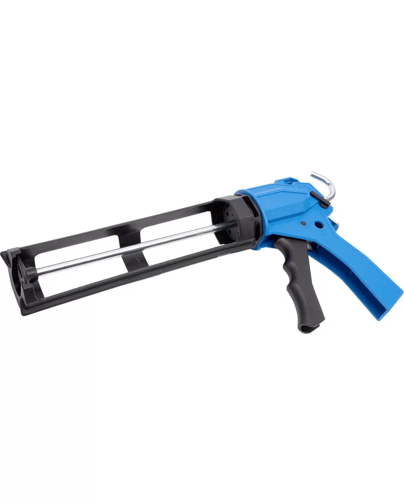 Robustní vytlačovací pistole s ergonomickou rukojetí vyrobená z kvalitního plastu. Možnost přepínaní na funkci „Drippless“. Otočný 360° nástavec na kartuše s objemem 310 ml. Vytlačovací síla až 135 kg. Součástí pistole je praktický nůž na kartuše a propichovací jehla.