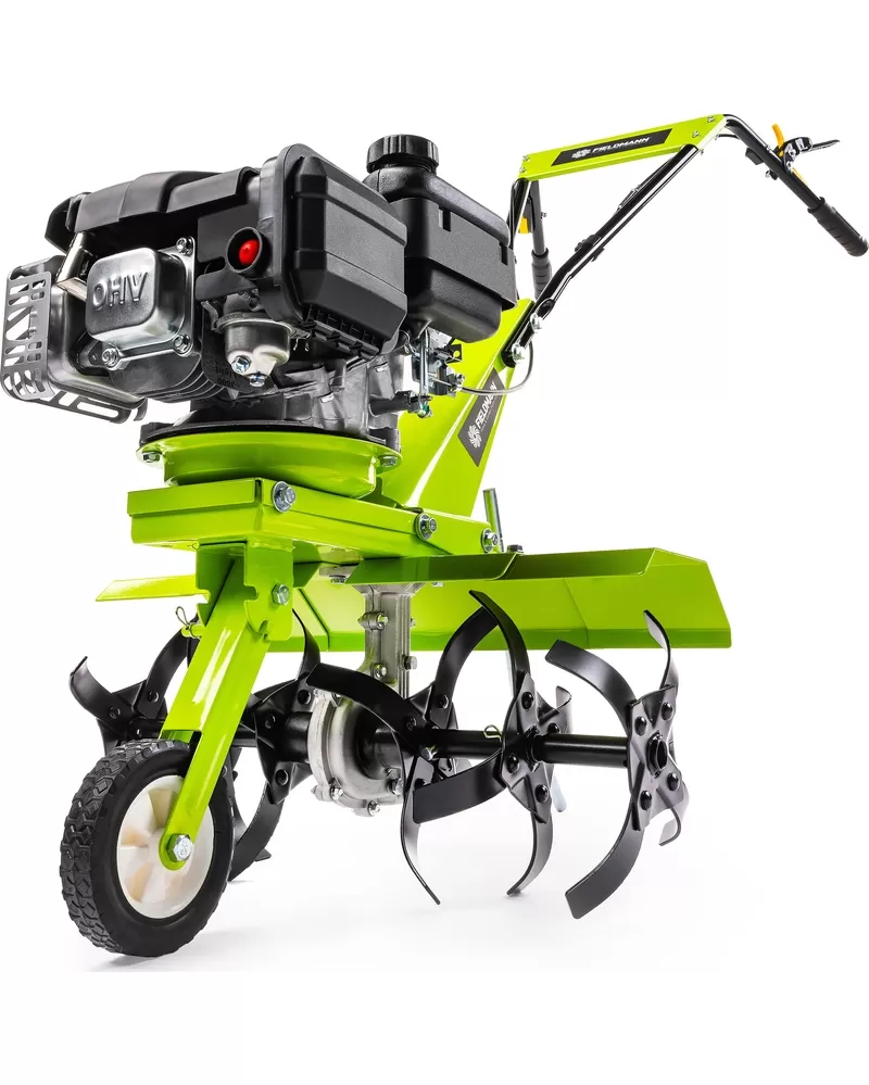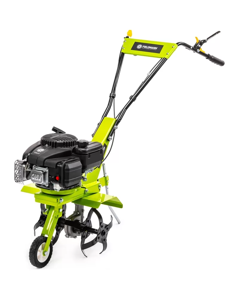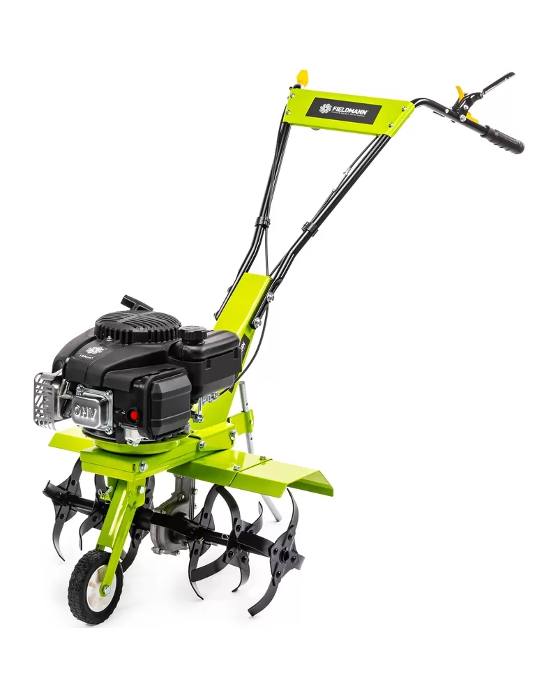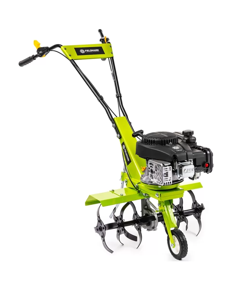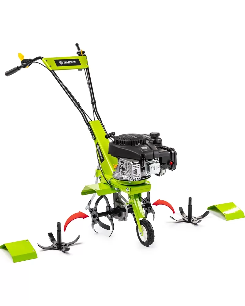 Kultivátor Fieldmann FZK 6115-139BL s vysoce kvalitním čtyřtaktním motorem LONCIN o objemu 139 cm3 představuje výkonný benzínový stroj s širokým záběrem, a to až 59 cm. Model je vybaven čtveřicí ocelových nožů, zajišťujících pracovní záběr 36 cm. Rozšíření záběru lze zajistit přidáním dalších dvou kultivačních nožů, které jsou součástí balení. Prostřednictvím hvězdicových ocelových nožů o průměru 26 cm je možné kultivovat půdu bez velké fyzické námahy. Kultivátor rozmělní vrchní vrstvu půdy rotujícími noži, čímž zcela rozbije hroudy, zeminu provzdušní a připraví na sadbu nebo setbu, případně do ní rovnou zapracuje hnojivo či kompost nebo zahradnický substrát. Rotující nože pronikající do půdy navíc vytáhnou na povrch plevel, takže jej stačí shrabat hráběmi. Díky benzínovému motoru nejste při práci limitováni délkou přívodního kabelu, takže se můžete vydat obdělávat i vzdálenější plochy.