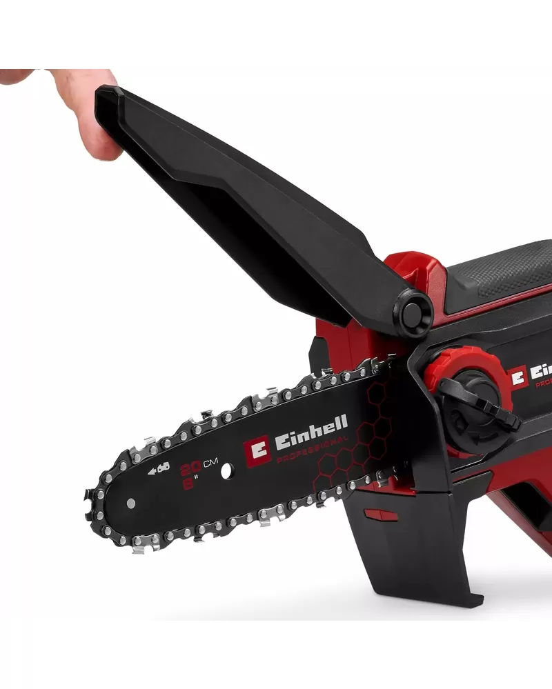 • Vestavěná ochrana rukou a sklopný kryt řetězu zajišťují bezpečnost.