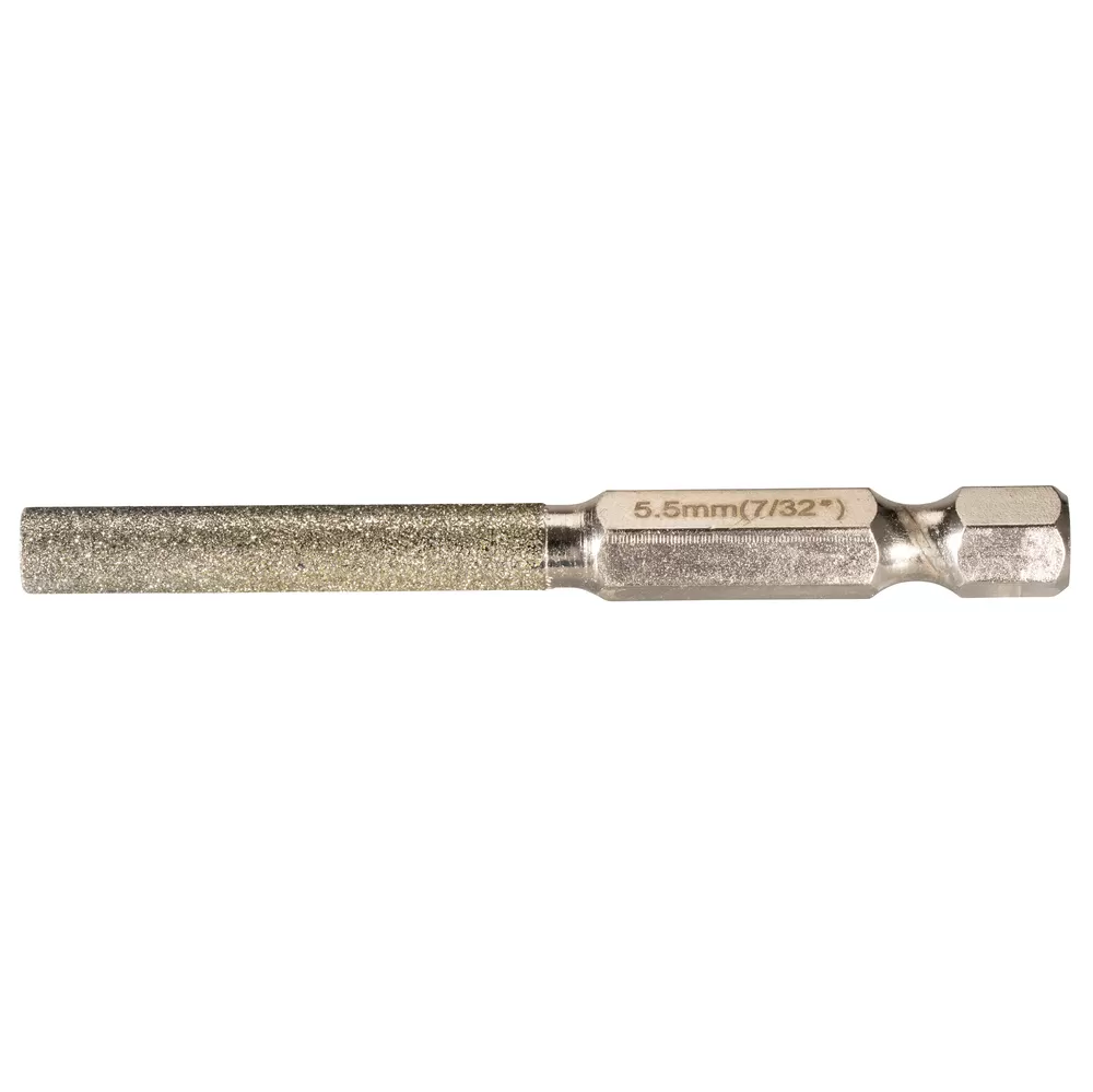 Pilník pro broušení řetězu v motorové pile pomocí AKU šroubováku. Kulatý pilník 5,5 mm, upnutí 1/4" šestihranná stopka.