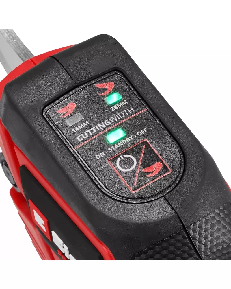 • Nastavitelný řezný výkon pro tenčí (14 mm) nebo silnější (28 mm) větve