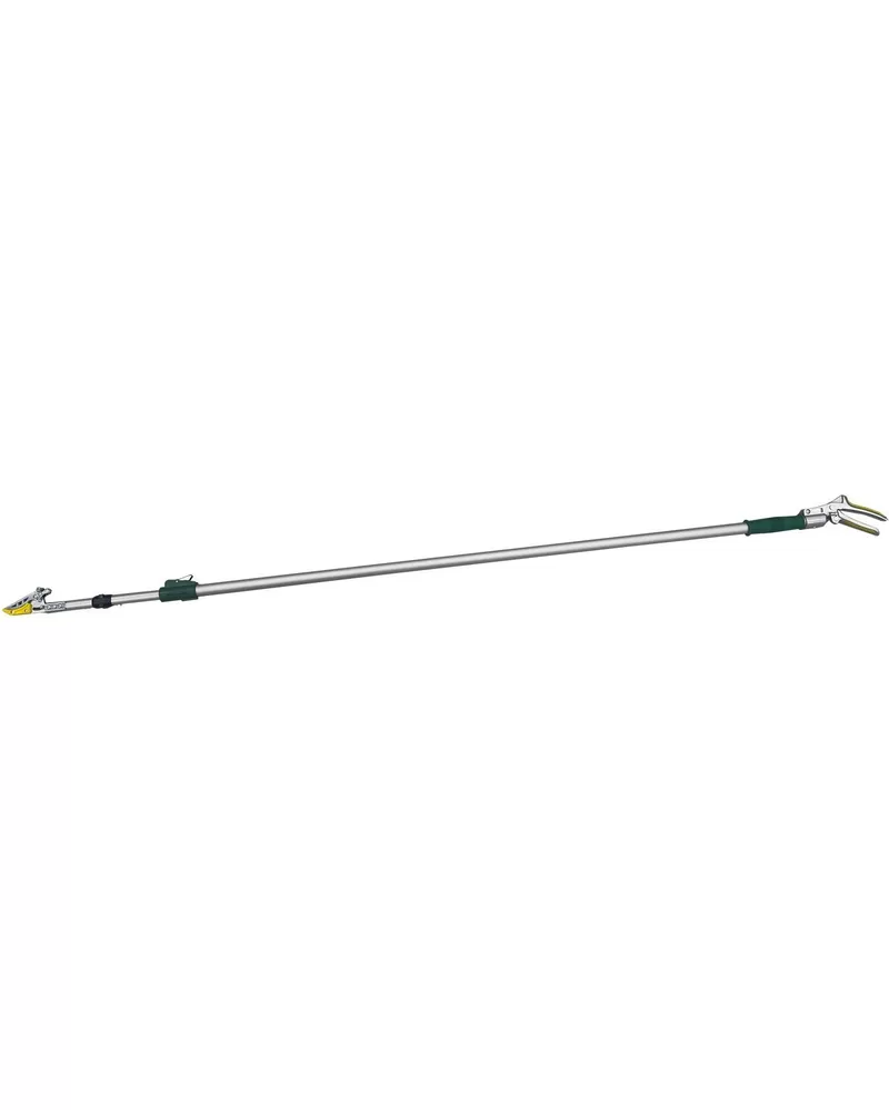 Teleskopické nůžky s nastavitelnou délkou 1850–3100 mm jsou ideální pro stříhání větví ve výškách bez potřeby žebříku. Ostrá čepel z vysoce uhlíkové oceli SK5 s nepřilnavou povrchovou úpravou zajišťuje čistý a přesný řez. Hliníková rukojeť s měkkým protiskluzovým TPR úchopem. Disponují nastavitelnou hlavou, kterou lze naklápět doprava i doleva, což usnadňuje střih i v hůře dostupných místech a pod různými úhly.