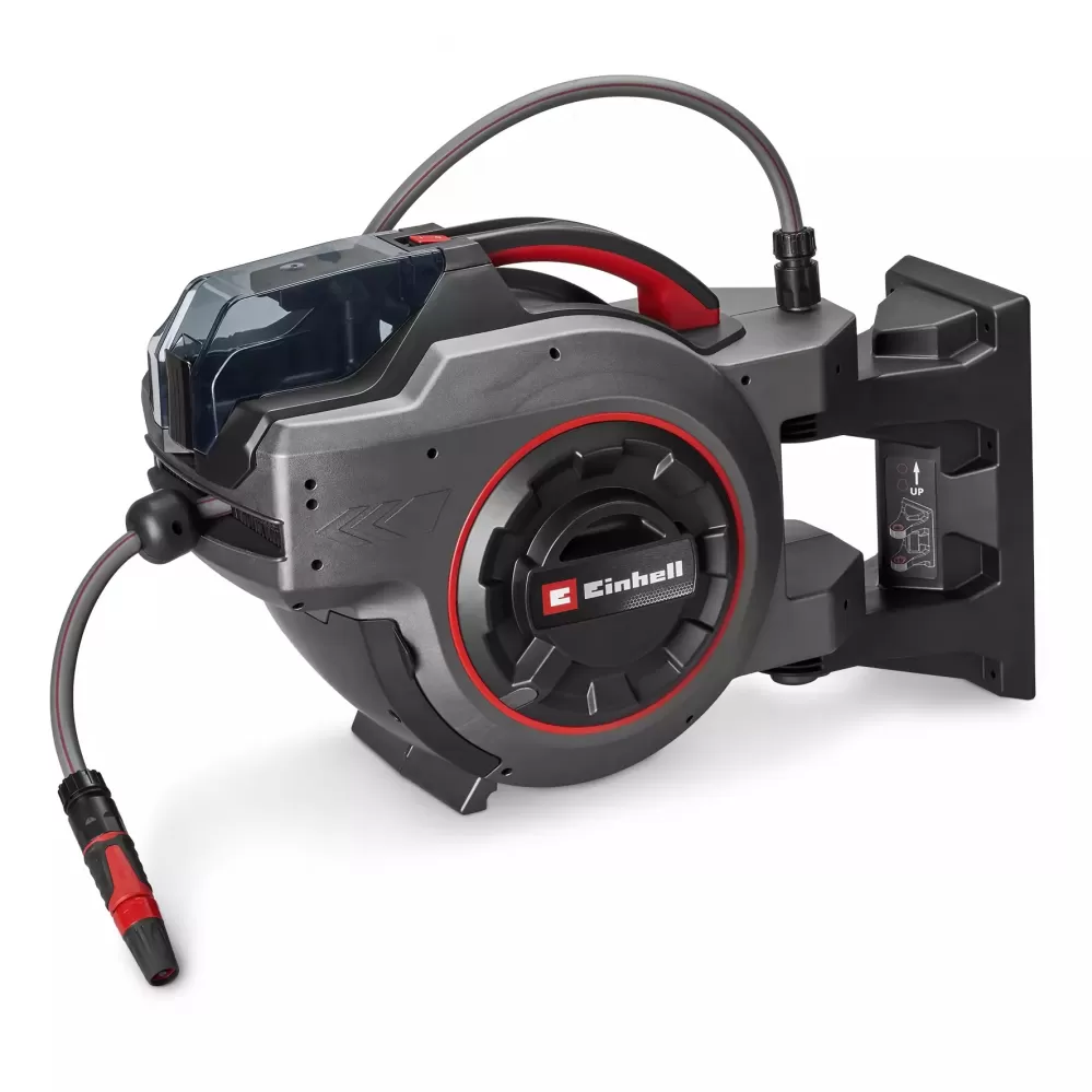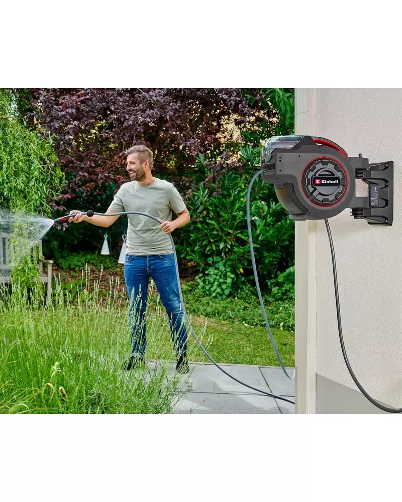• Aku hadicový naviják Einhell GE-HR 18/30-1 Li-Solo zavlažuje zahradu, aniž by bylo nutné ruční navíjení hadice.