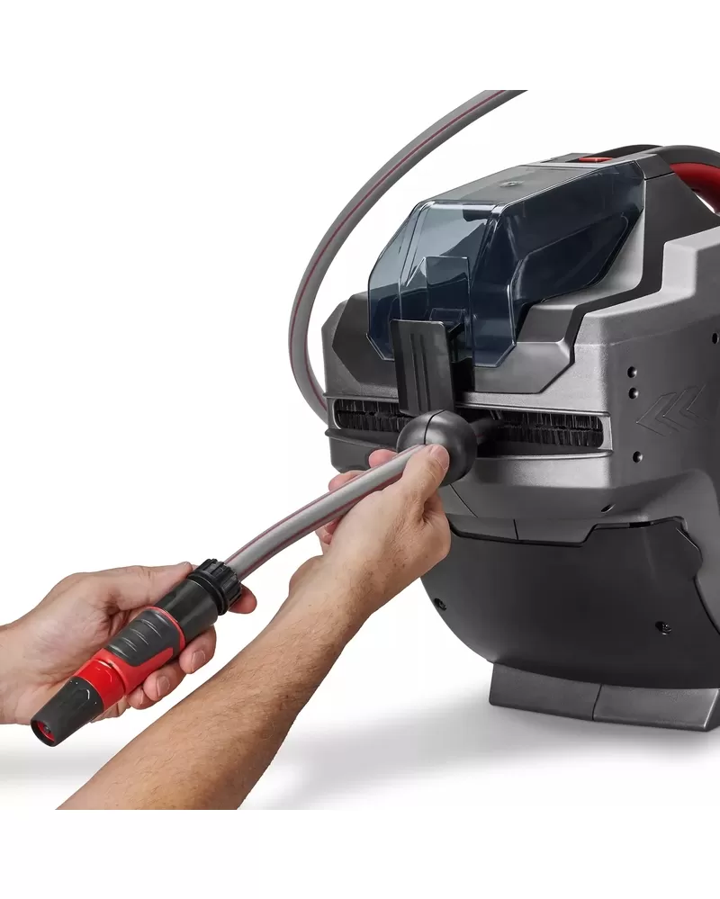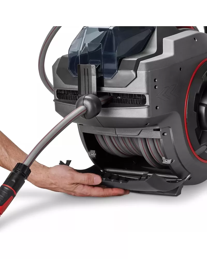• Automaticky navine přiloženou 30 m dlouhou UV-odolnou zahradní hadici o průměru 12,5 mm (1/2") stiskem tlačítka.